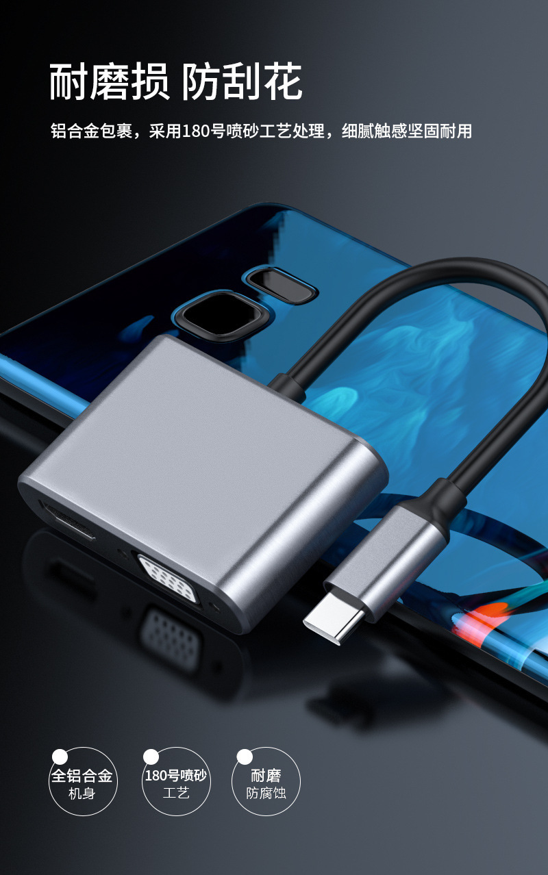 Type-C-HDMI VGA拡張ドックはアップルMAC華為ノートUSB-C変換器拡張ドックを適用する