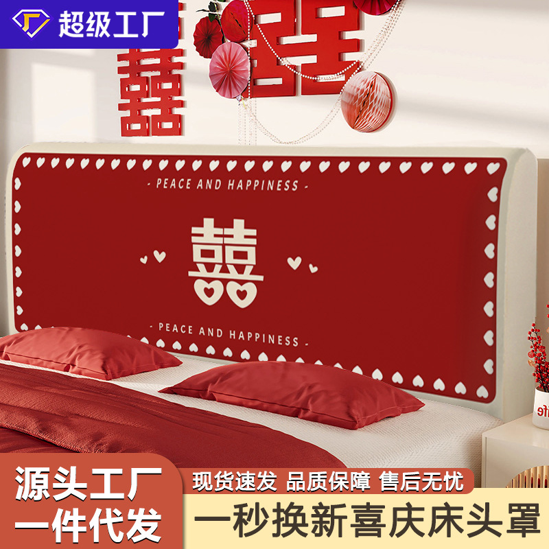 中国式の結婚式のベッドの頭の箱の蓋の布の赤い絹織物の材質の喜字のベッドの頭の箱の防塵布の結婚する部屋のお祝いのテーブルクロス
