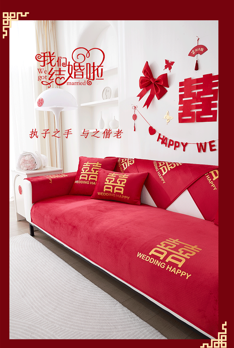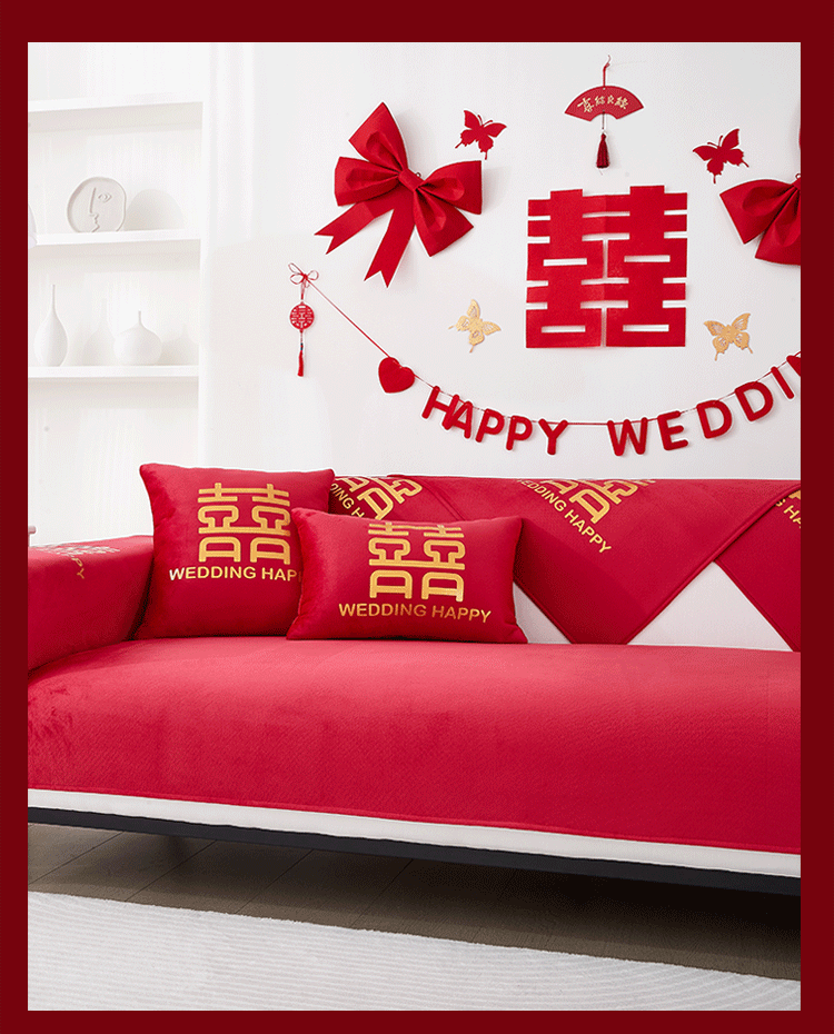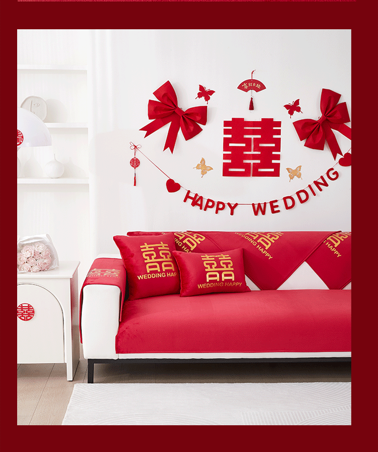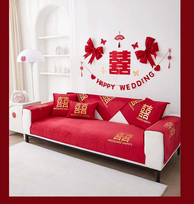 喜庆沙发垫结婚大红色防滑四季通用婚房装饰布置沙发坐垫盖巾全包