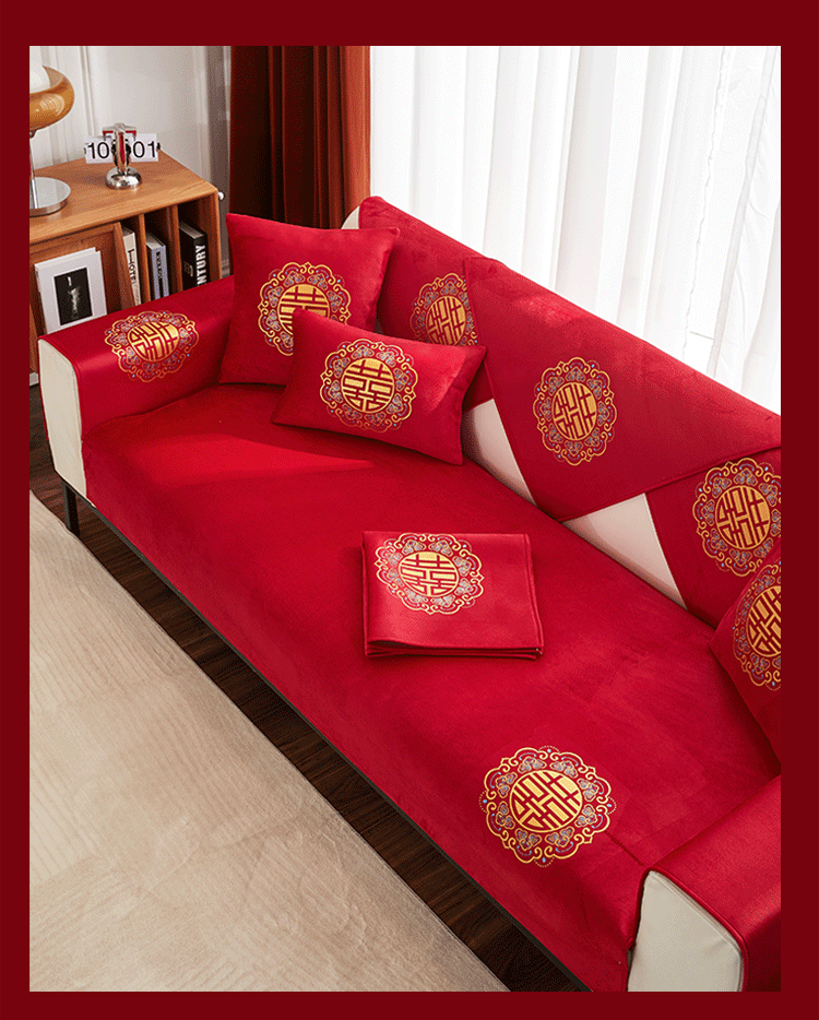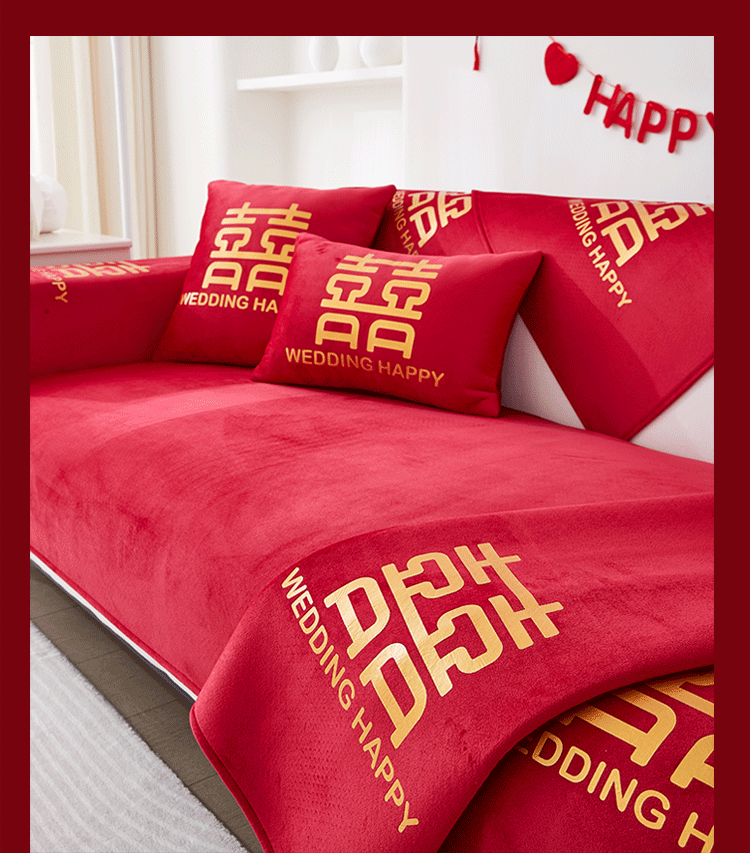 お祝いソファーカバー布タオル四季通用防猫掴み大赤色ソファーマット結婚結婚結婚部屋配置滑り止めカバー