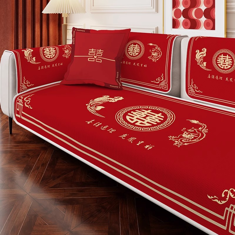 結婚祝いソファーマット大紅喜字結婚式飾りソファータオル新中国式四季通用座布団滑り止めマット