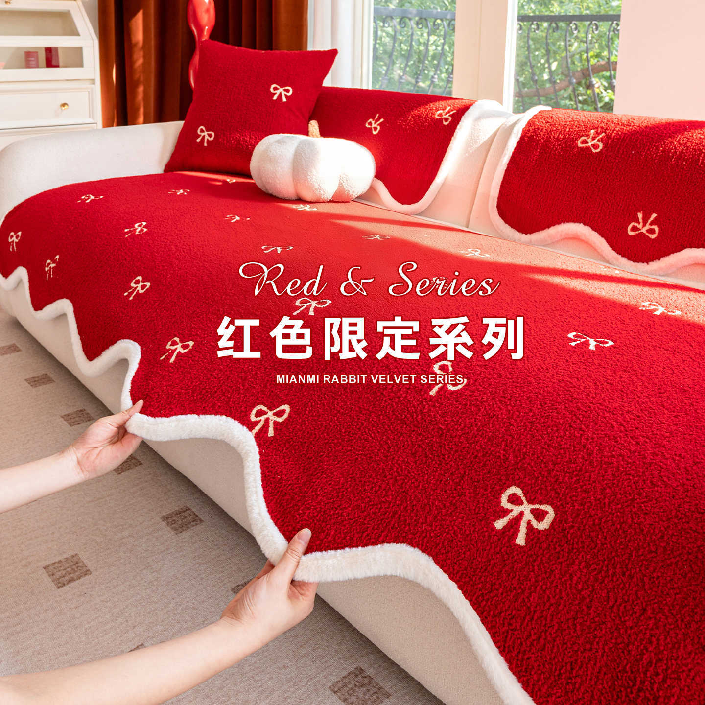 圣诞节红色沙发垫冬2026新款高级感轻奢结婚喜庆沙发坐垫防滑盖布