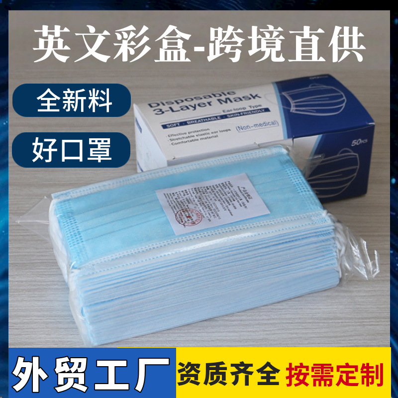 使い捨て不織布三層英語箱入り大人用日常防塵顔保護マスク越境工場