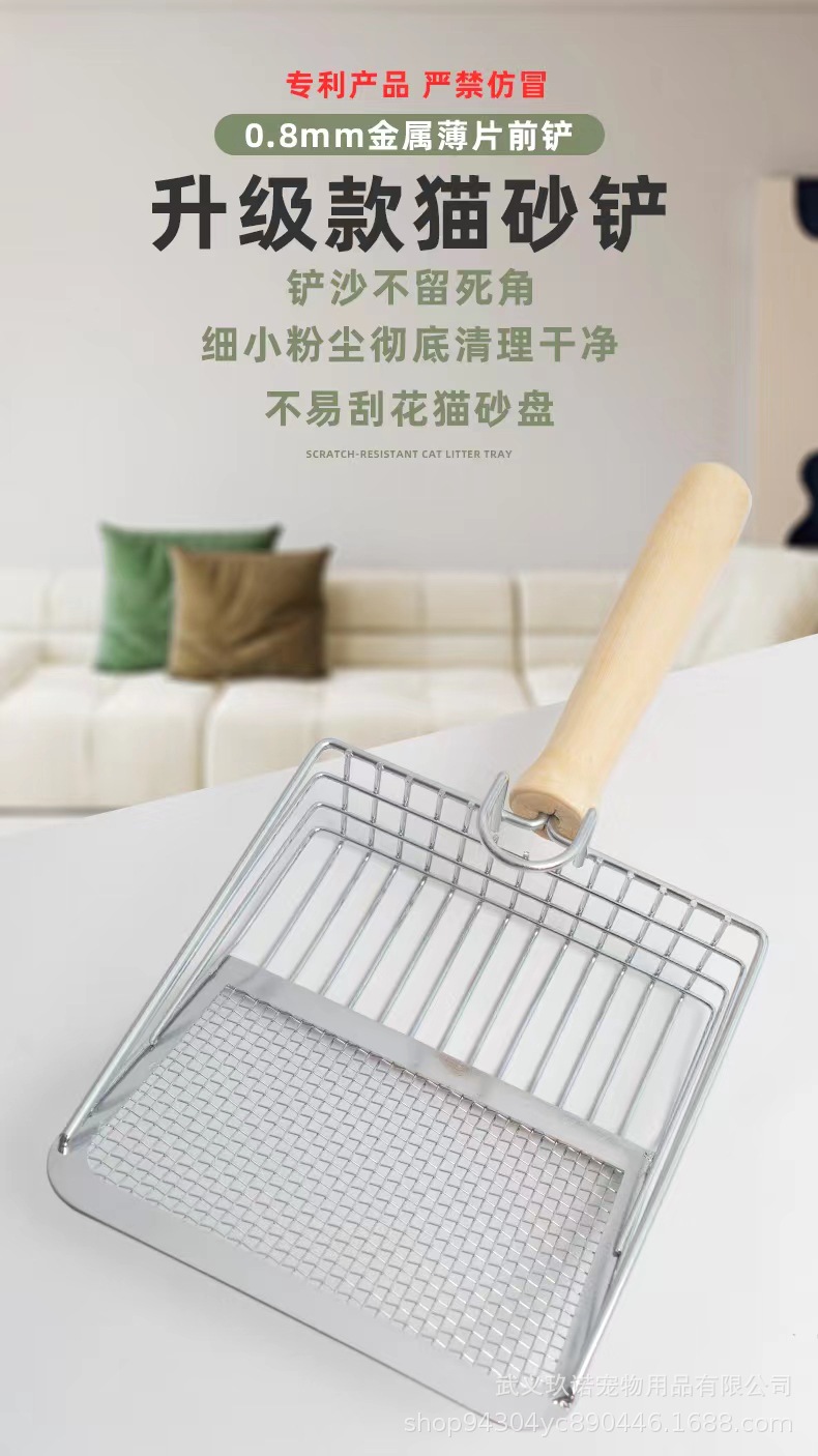 金属猫砂シャベル木柄二合一猫シャベル糞神器ペット清掃用品細孔大シャベル卸売り