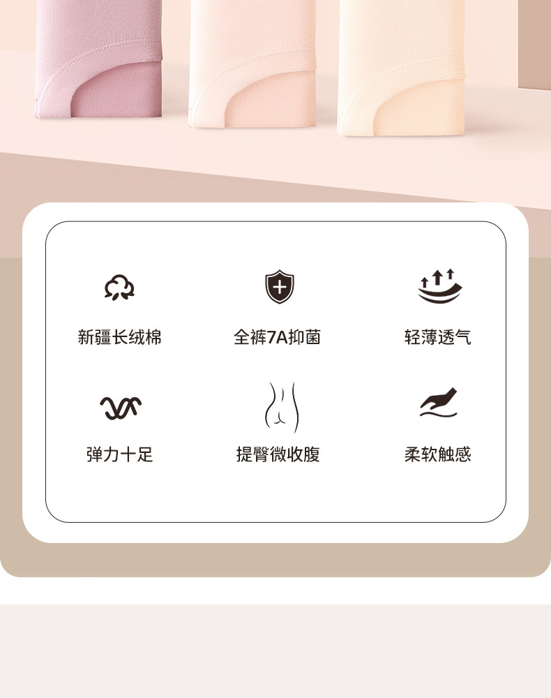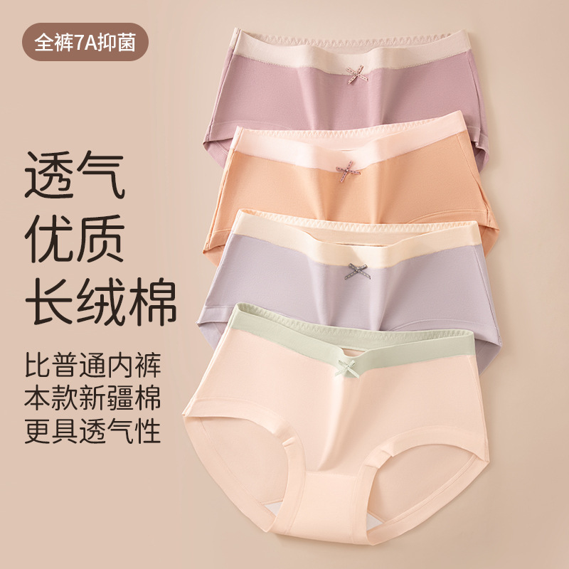 60支新疆纯棉内裤女纯棉7A抗菌裆女士中腰舒适无痕女生三角短裤