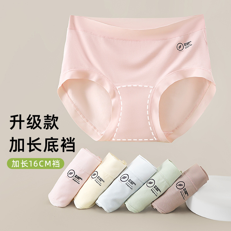 女士莫代尔内裤9A抑菌纯棉加长档中腰简约更换标签少女三角裤头