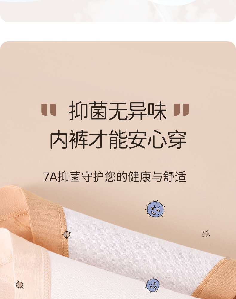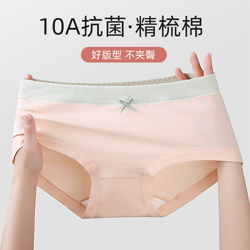 10A抗菌纯棉女士内裤全棉抑菌裆中腰包臀大码透气女士内裤A类棉