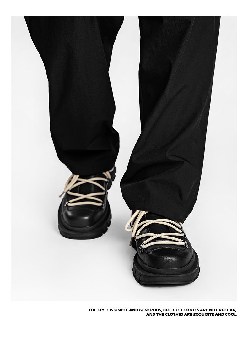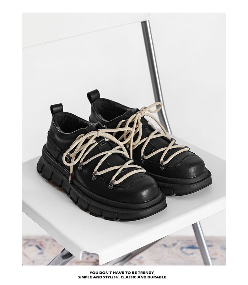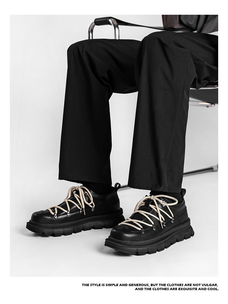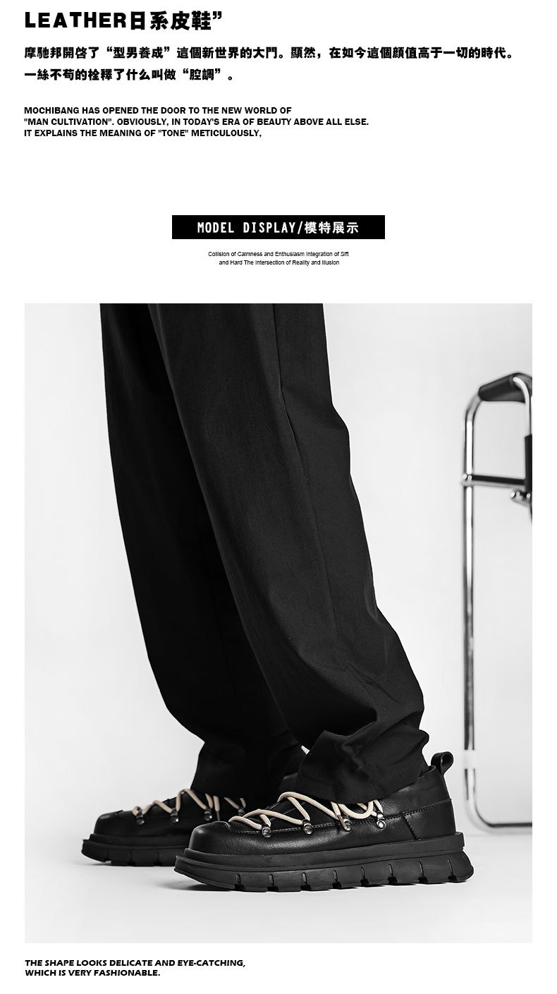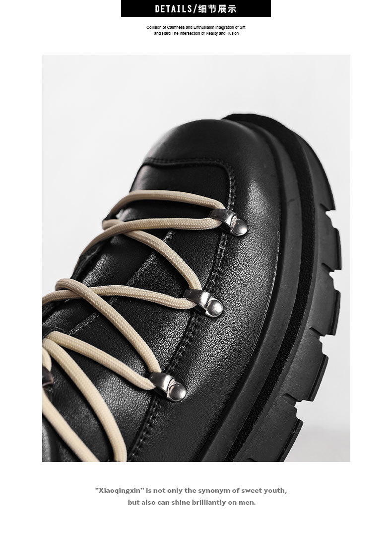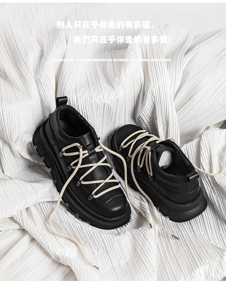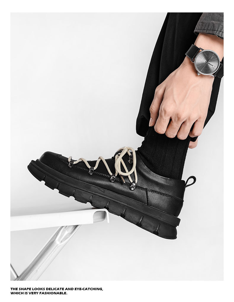 男性靴秋冬小衆デザインカジュアル革靴黒本革厚い底板靴日系低組マーティンショートブーツ