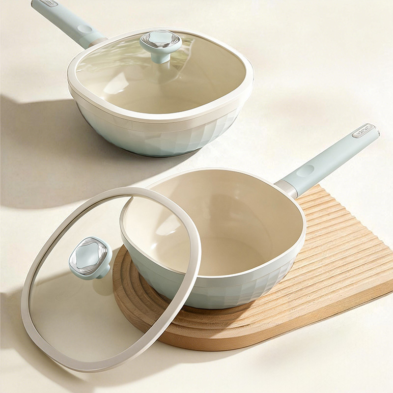 钛陶瓷炒锅小方锅家用不粘锅一人食炒菜锅平底锅煎锅燃气电磁通用