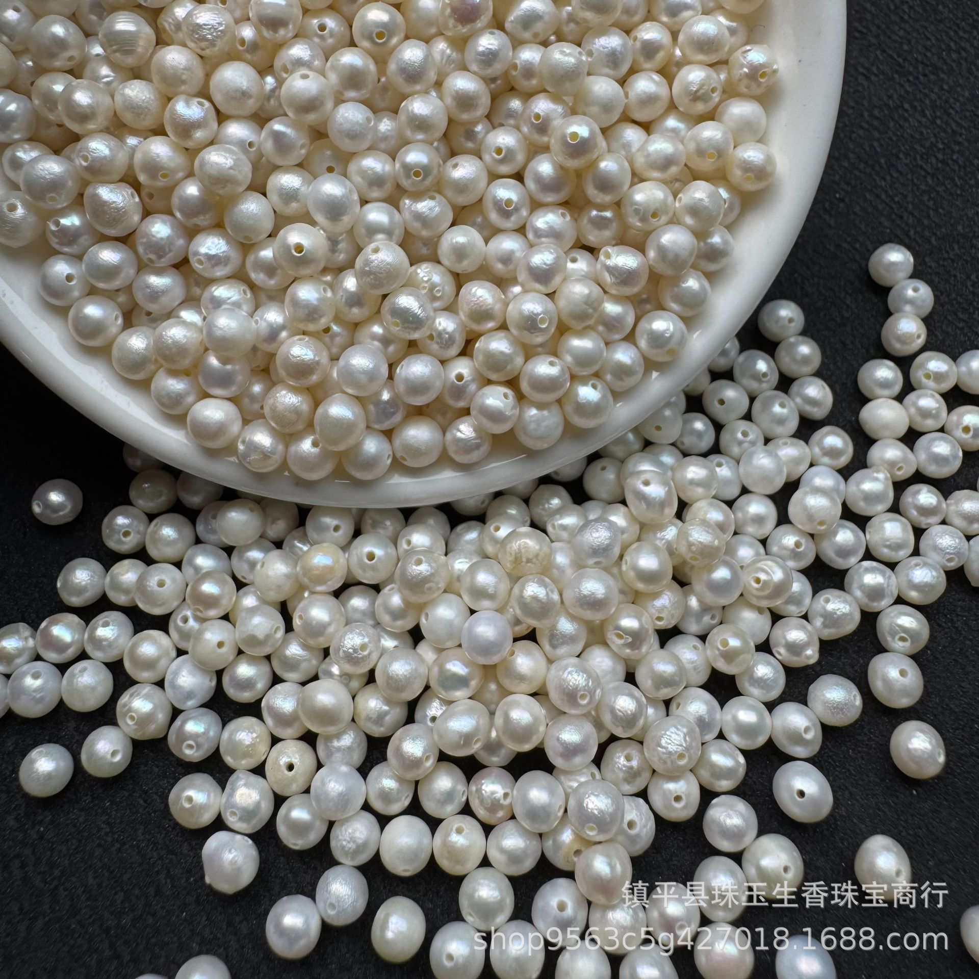 天然淡水珍珠散珠4mm有孔单颗穿孔手工diy手链项链珍珠天然散珠
