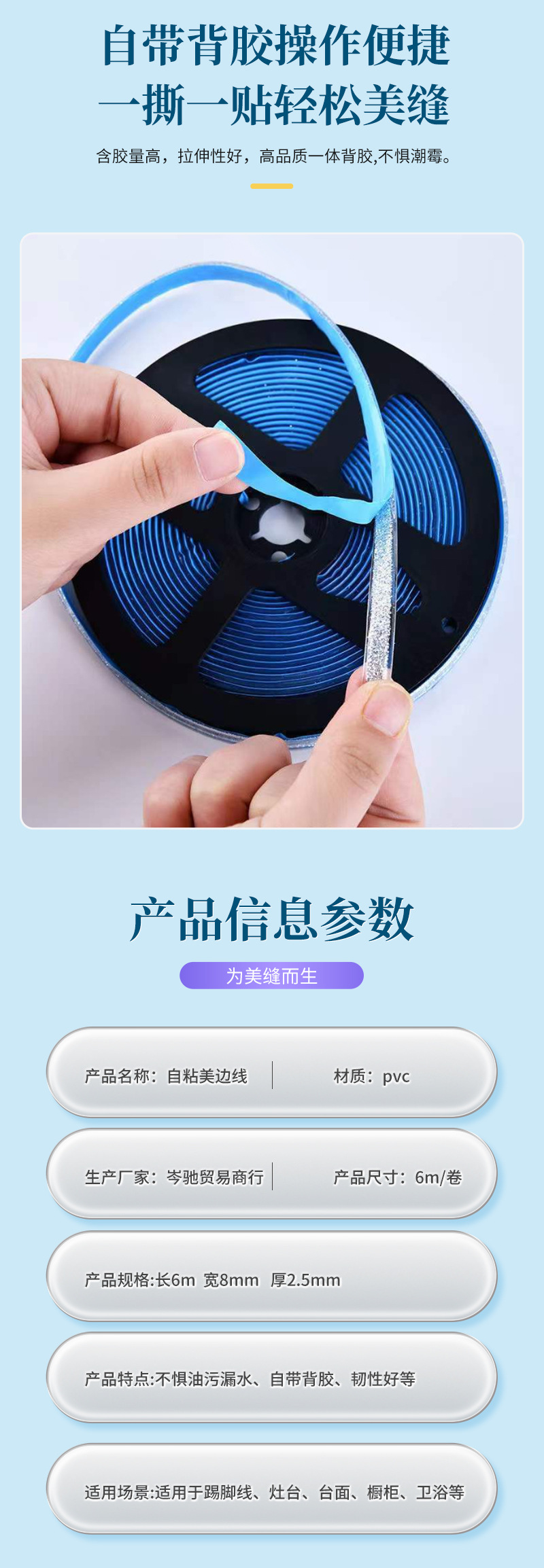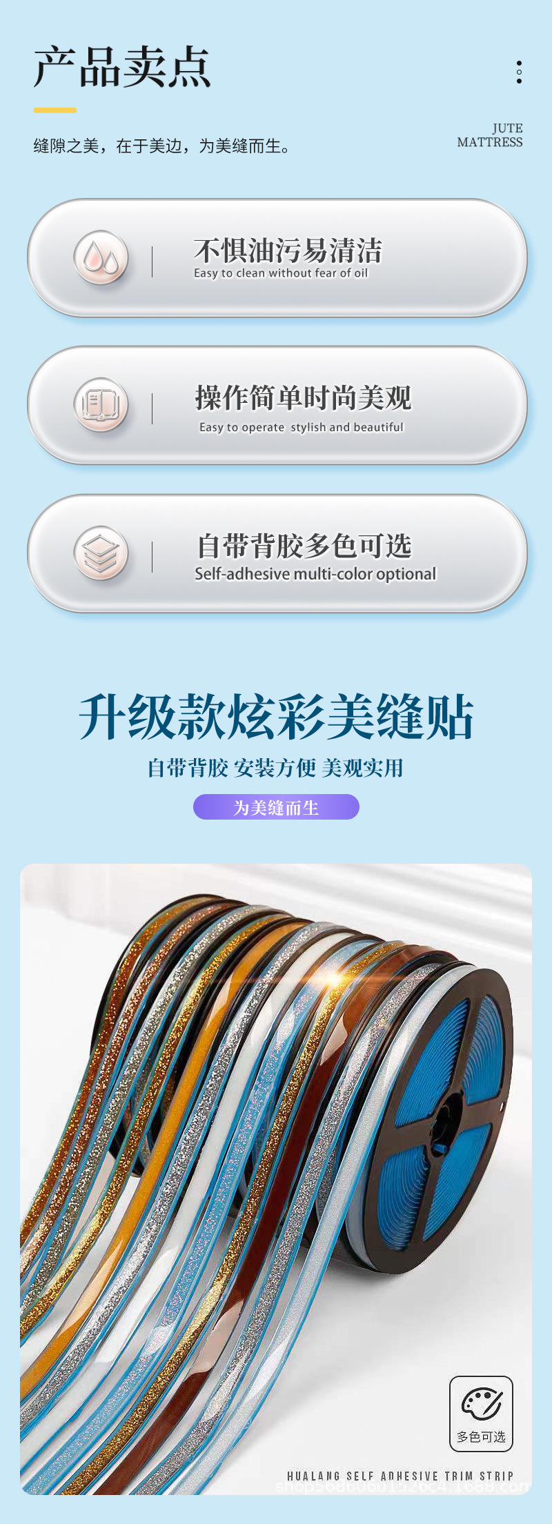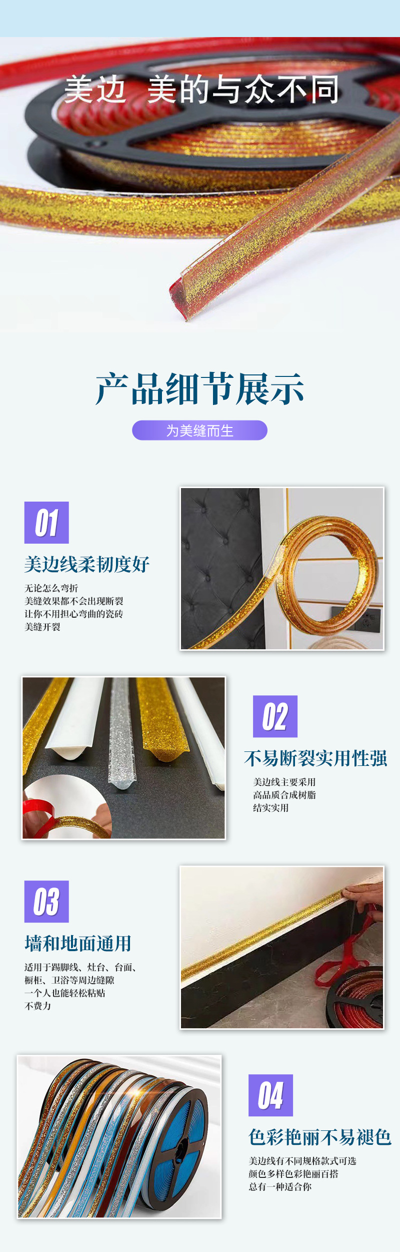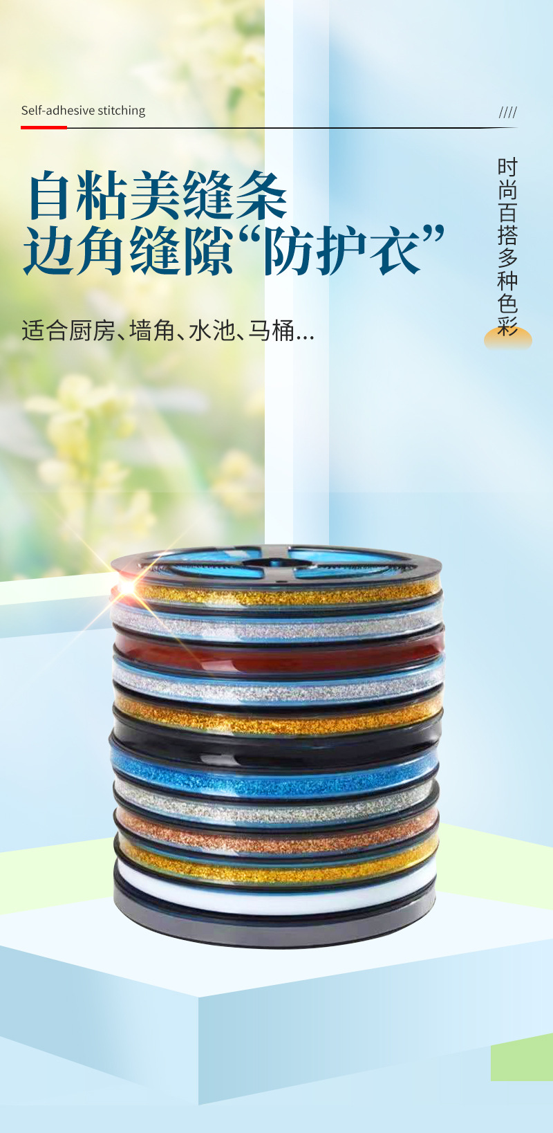 厂家直供自粘款瓷砖平面美边线美缝贴美边胶条多色自粘美石膏线