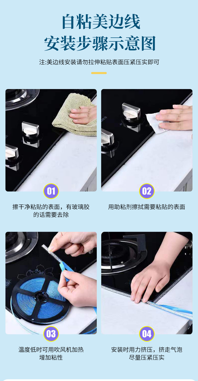 自粘美縫貼りキッチン防水防汚水槽封辺美辺線トイレ隙間貼り付けコンロトイレ