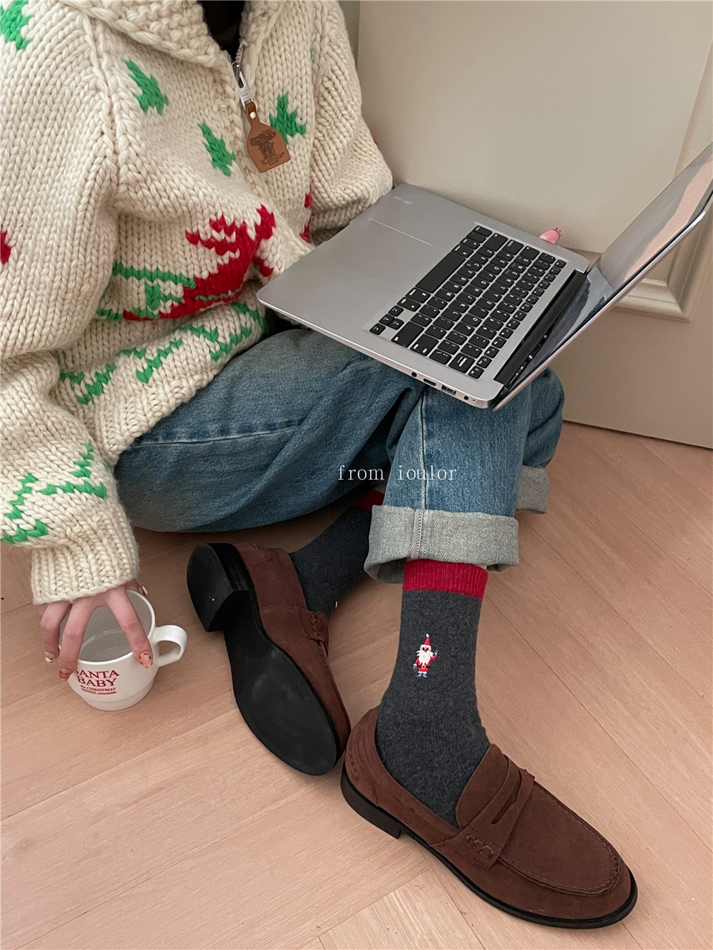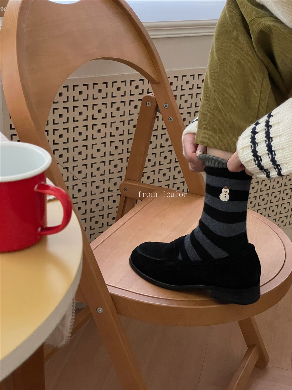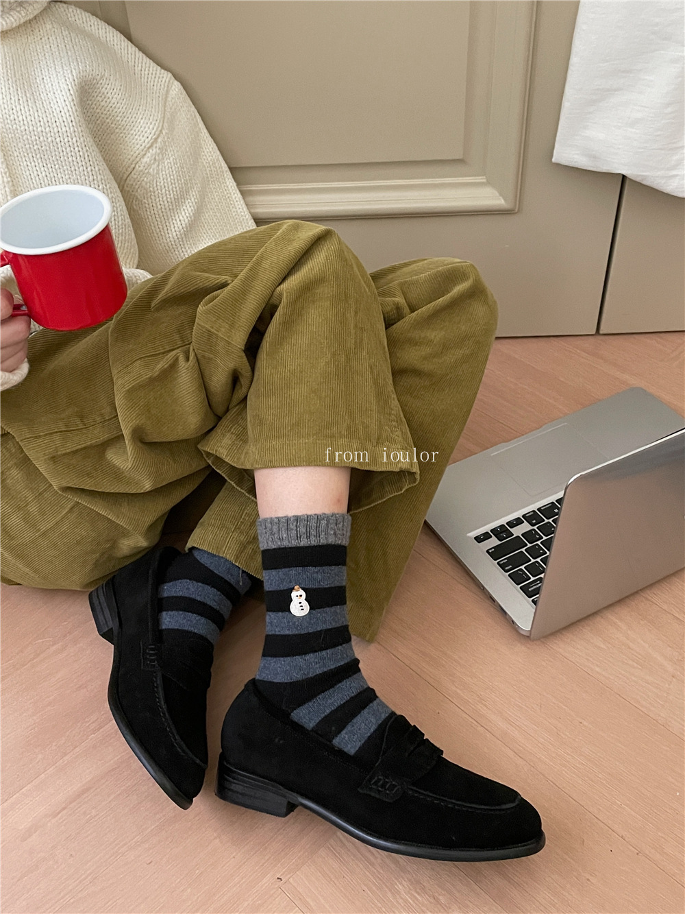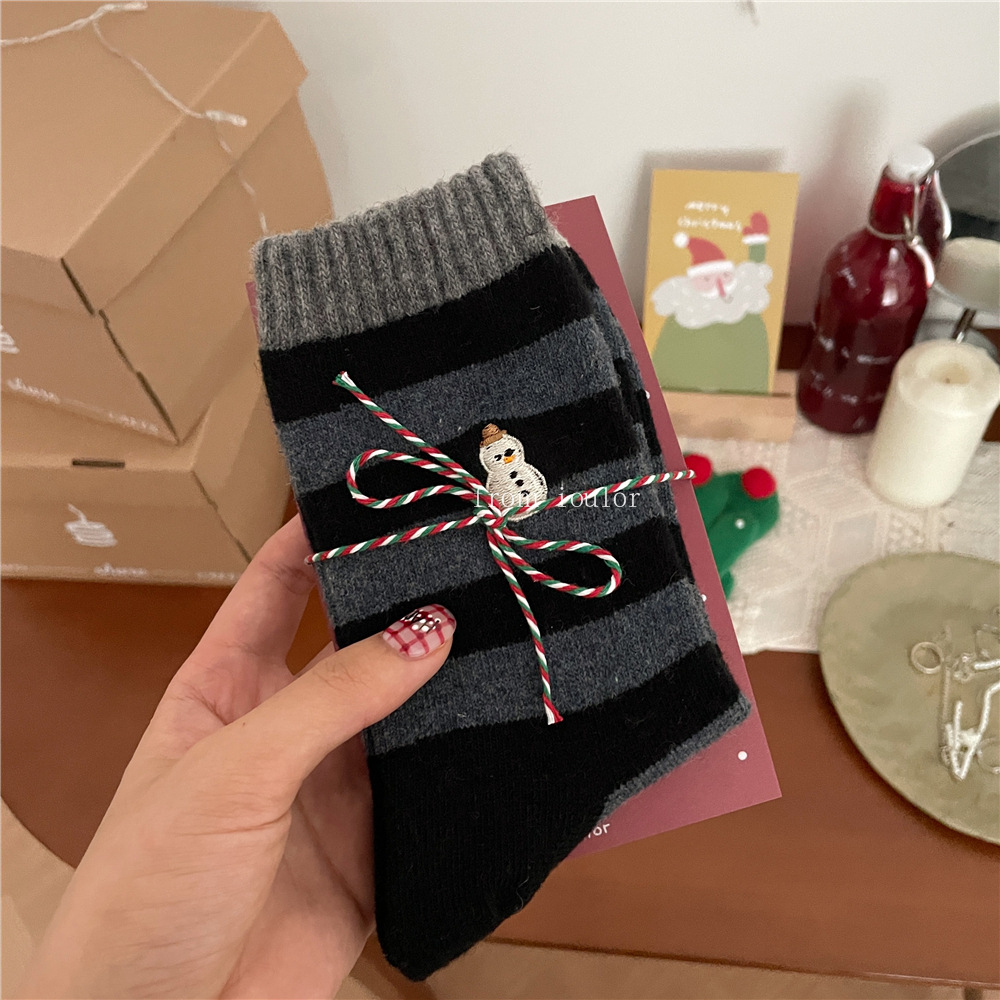 Ioulor新品クリスマス靴下ウールソックス雪だるまサンタクロースかわいいインスタ风ミドルソックスストライプ女性ソックス