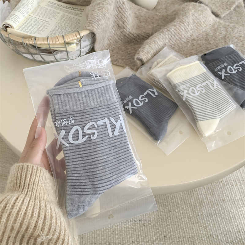 秋冬新款无骨韩系格雷灰色系保暖中筒袜子女 ins穿搭女袜小红书