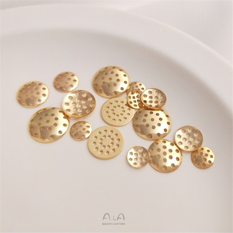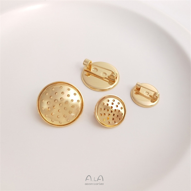 保色14k銅包真金ネット盤ブローチ部品diy手作りアクセサリー材料円盤蓮蓬頭安全ピン