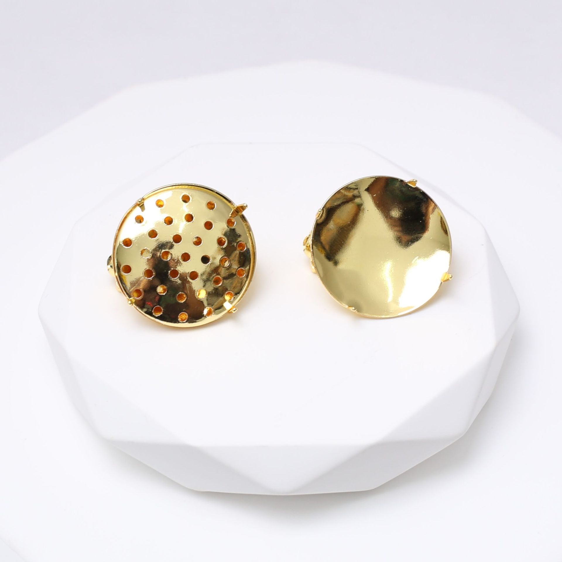 円形蓮蓬頭包金14k保色ネット盤ねじ耳クリップdiy手作り耳飾り部品耳穴なし神器