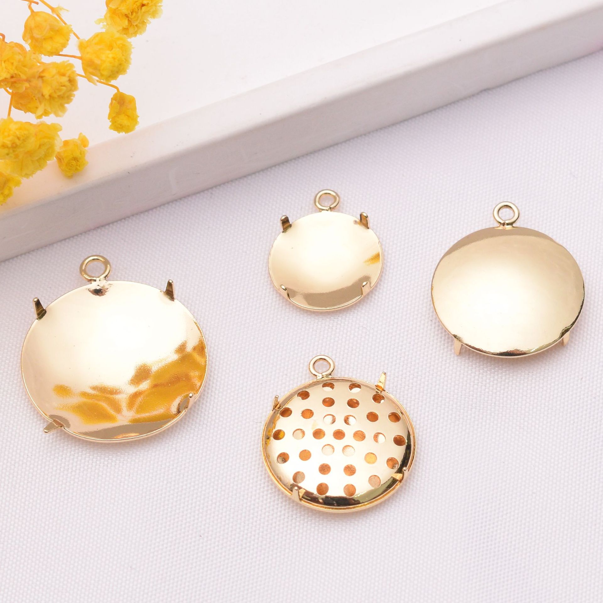 保色14k包金ネット盤ペンダント部品12mm 16mm空托diy手作りネックレス服飾材料底托