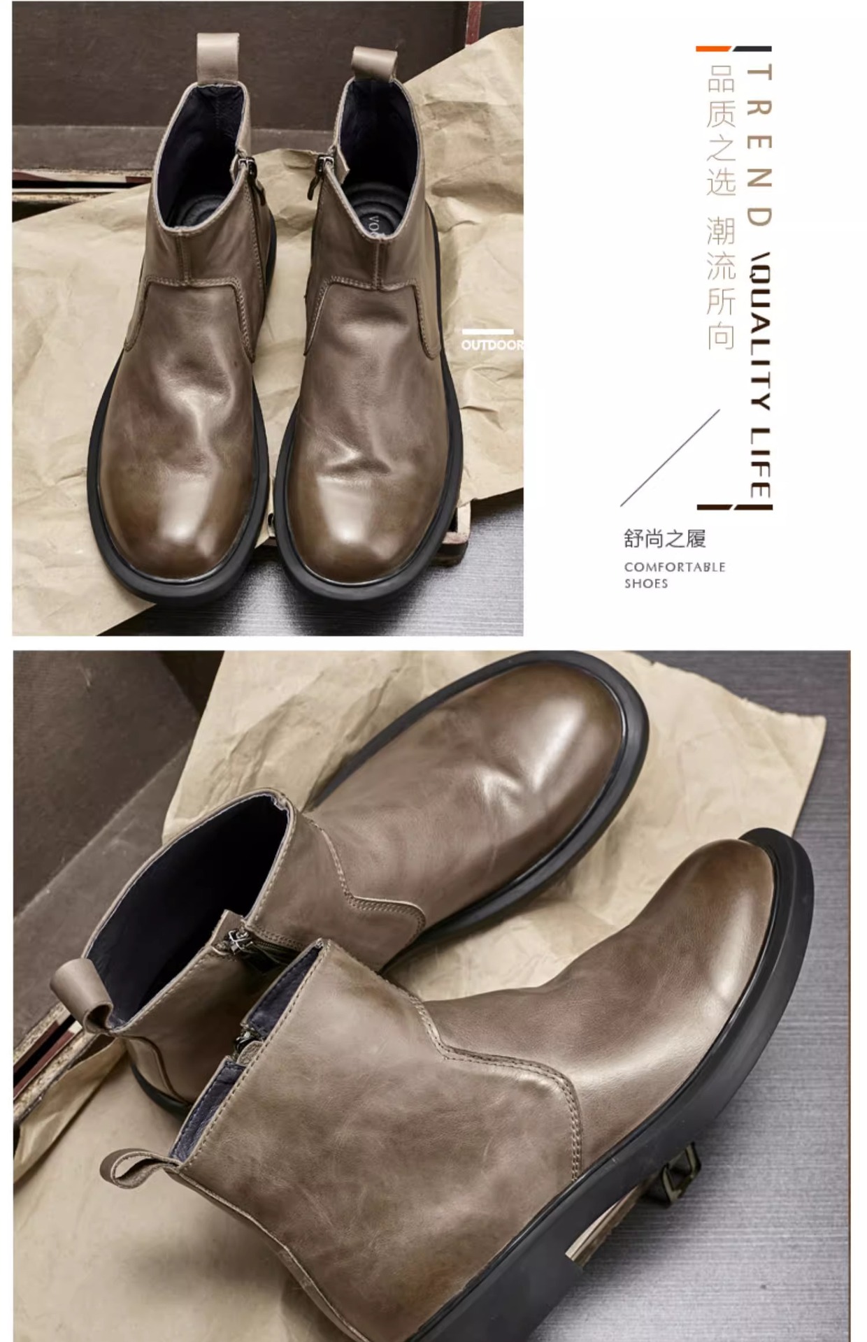 秋冬モデル2023本革高組マーティンブーツ男性ファスナーソフト底ファッションカジュアルブーツとベルベットチェルシーブーツ