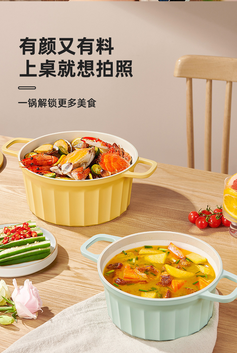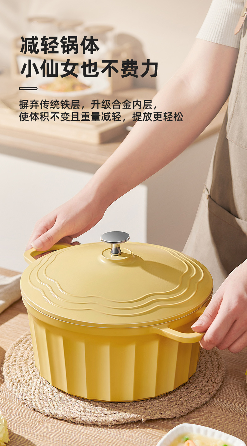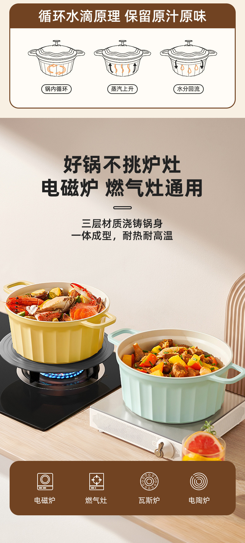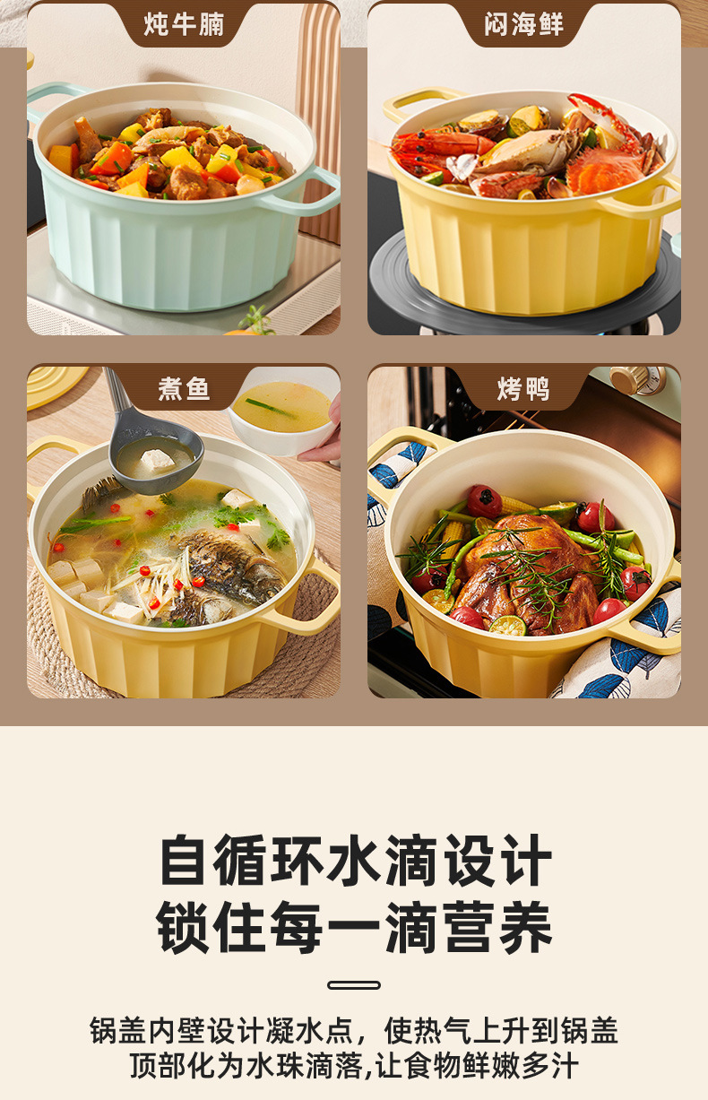 铸铁珐琅锅家用多功能加厚不粘锅厨房双耳锅海鲜锅Seafood Pot