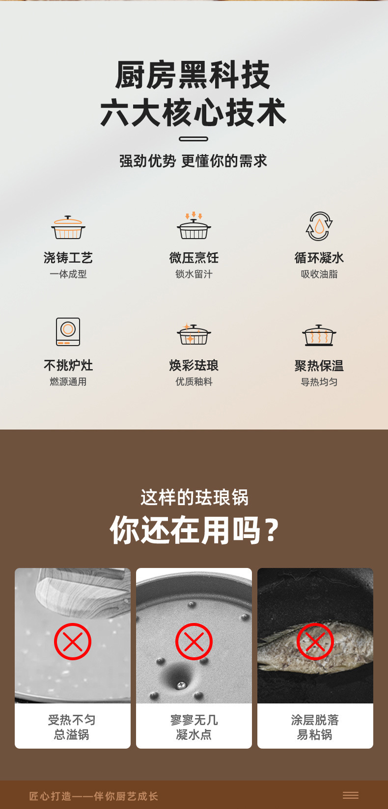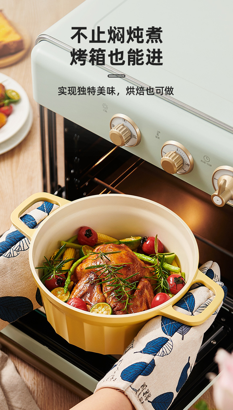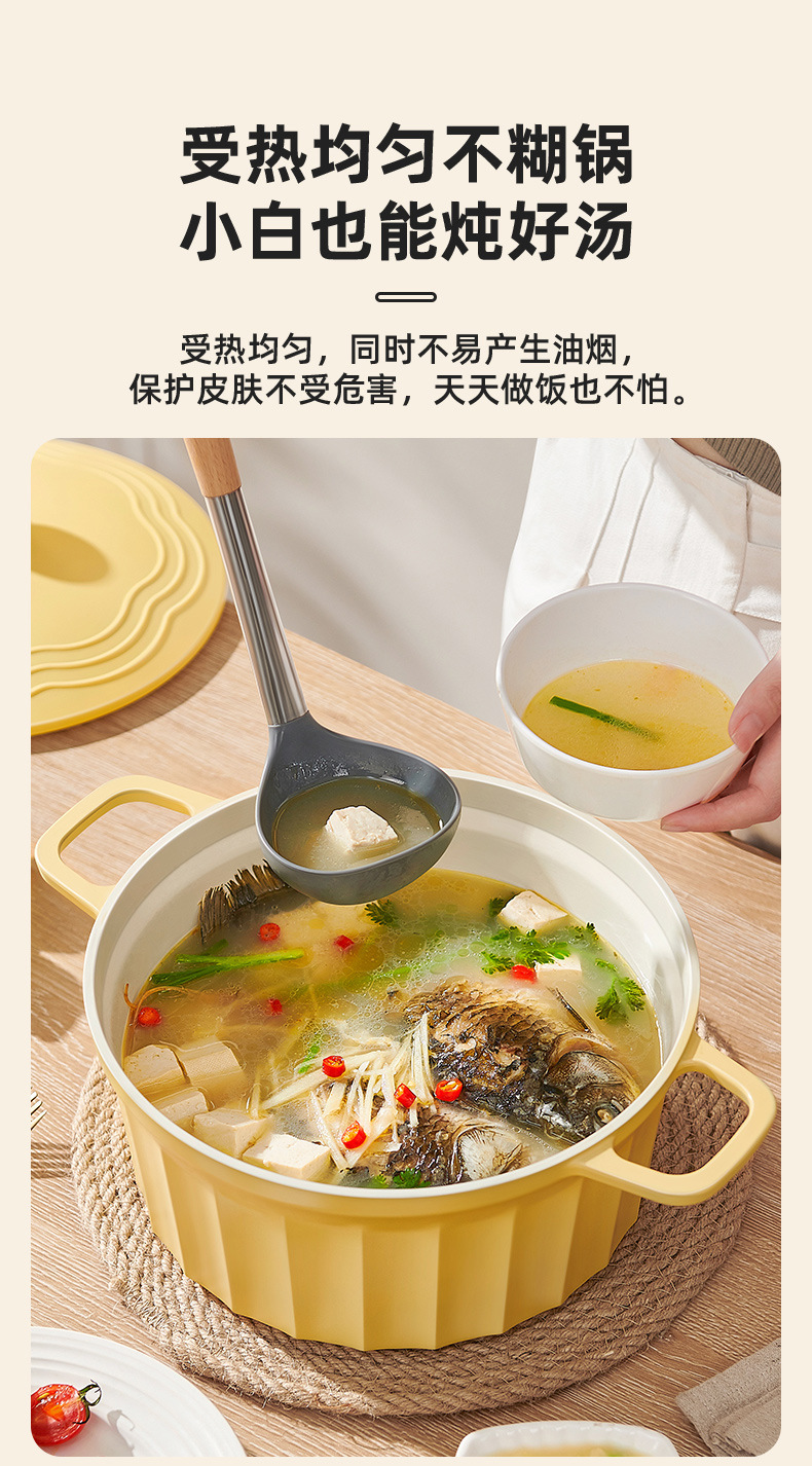 铸铁珐琅锅家用多功能加厚不粘锅厨房双耳锅海鲜锅Seafood Pot