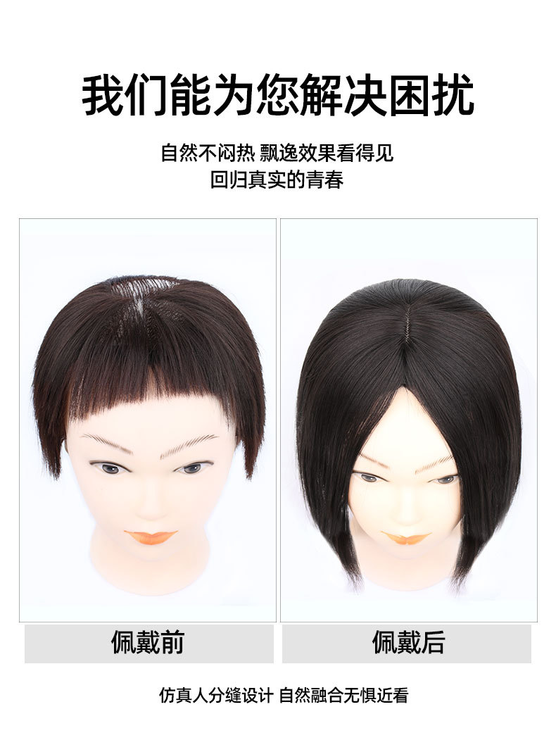 頭の上でかつらを再発行します。女性の許昌かつらは本当に白髪の増発量をカバーします。