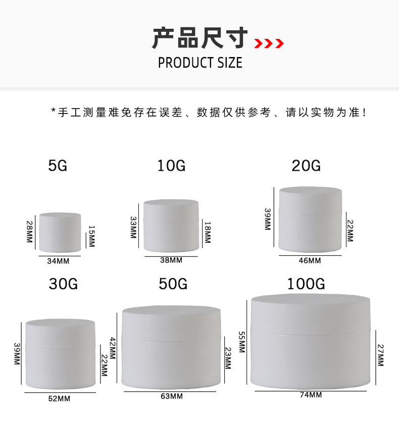 5g;白PPジャー(スクリューキャップ);プラスチック,5g;黒色PPジャー(スクリューキャップ);プラスチック,10g;白PPジャー(スクリューキャップ);プラスチック,10g;黒PPジャー(スクリューキャップ);プラスチック,20g;白PPジャー(スクリューキャップ);プラスチック,20g;黒PPジャー(スクリューキャップ);プラスチック,30g;白PPジャー(スクリューキャップ);プラスチック,30g;黒PPジャー(スクリューキャップ);プラスチック,50g;白PP瓶(スクリューキャップ);プラスチック,50g;黒色PPジャー(スクリューキャップ);プラスチック,100g;白PPジャー(スクリューキャップ);プラスチック,100g;黒PPジャー(スクリューキャップ);プラスチック