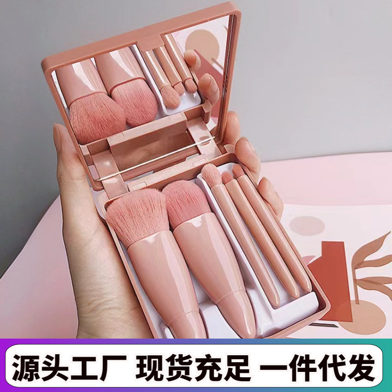 新型旅行5本の鏡ケース化粧ブラシセット携帯型多機能散粉ブラシ頬紅ブラシ美化粧ツール