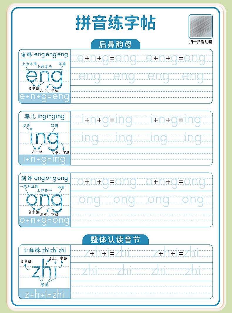ピンインは訓練して字を練習します。