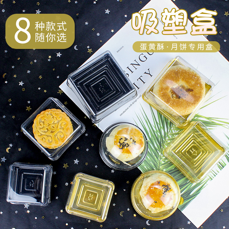 プラスチック天地蓋正方形円形卵黄ショートニング箱月餅托雪媚娘青団包装箱50匹