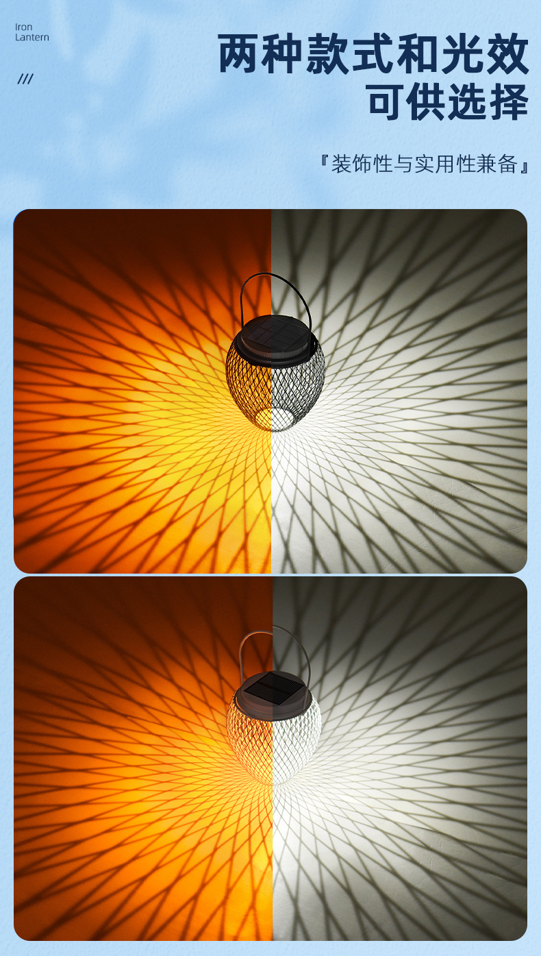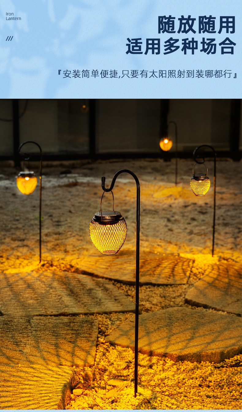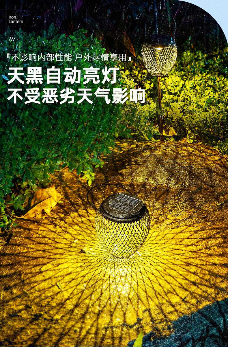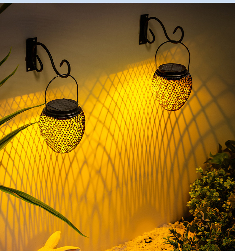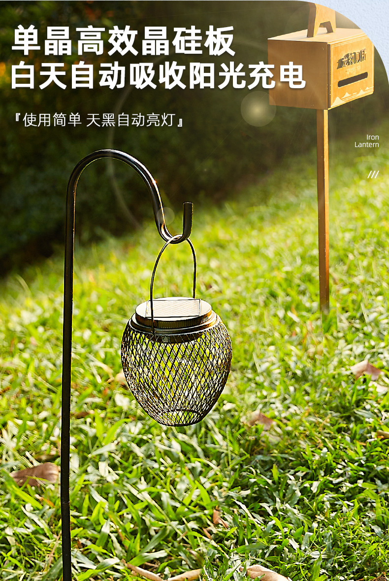 国境を越えた新型太陽エネルギー吊り灯庭灯屋外景観ベランダ家庭用装飾花園レトロ鉄芸提灯