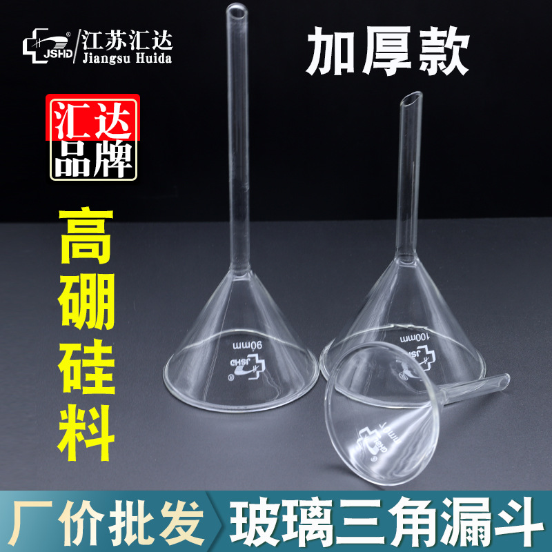 ガラス三角ホッパー短管長管ホッパー50/60/75/90mm厚いガラスロングネック短首ホッパー