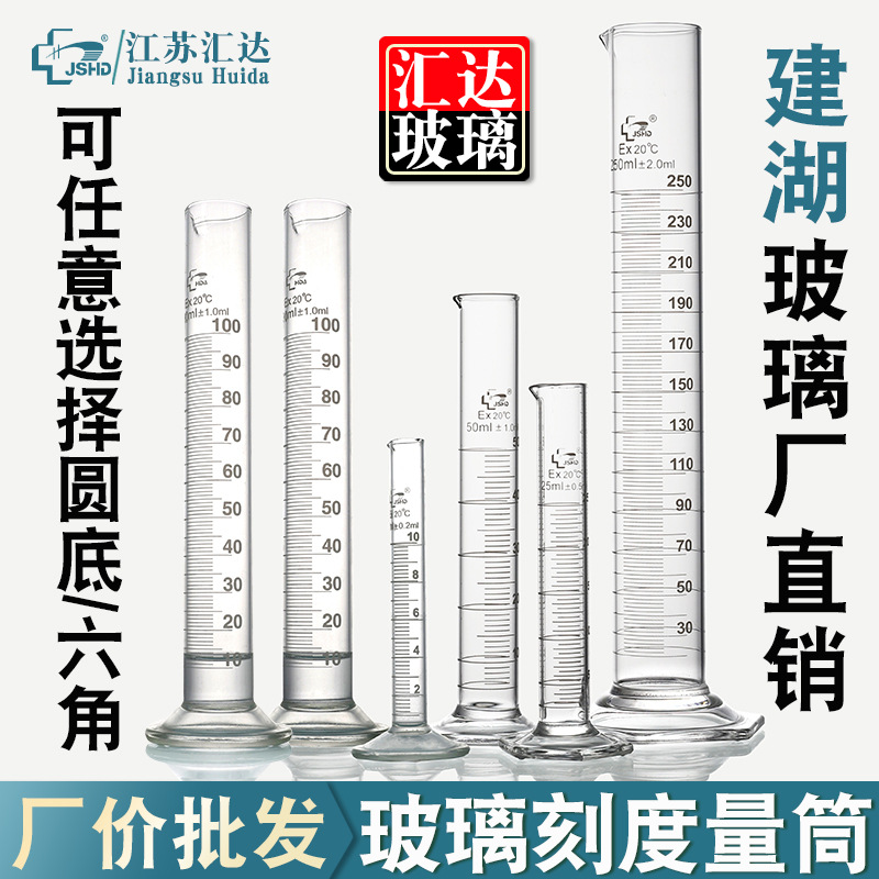 ガラス六角メスシリンダー高ホウ素シリコン厚いガラスストリップスケール10/25/50/100/250/500/1000ml