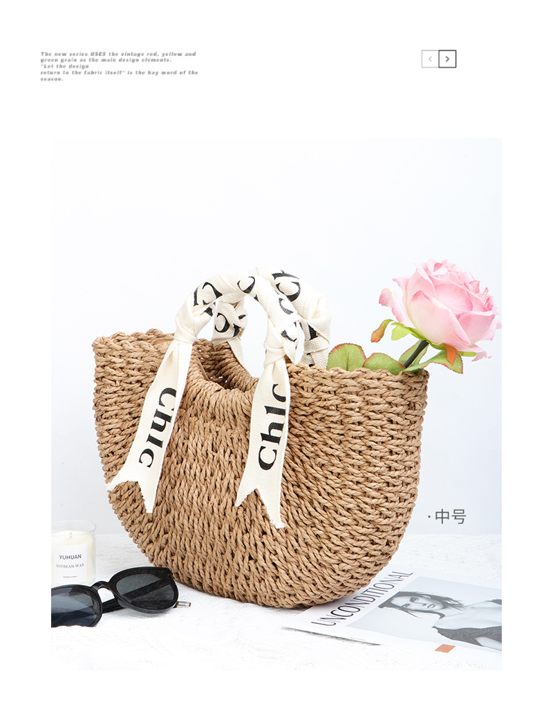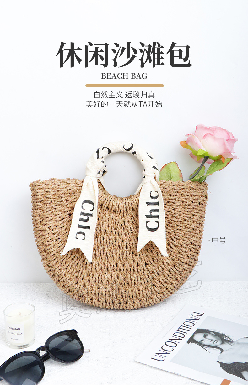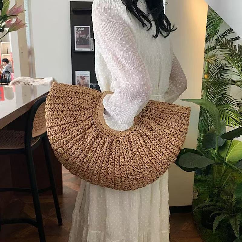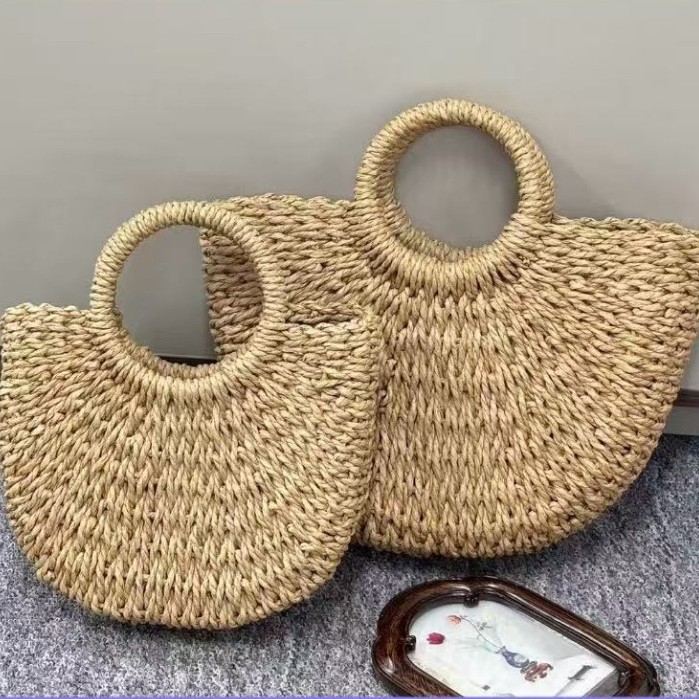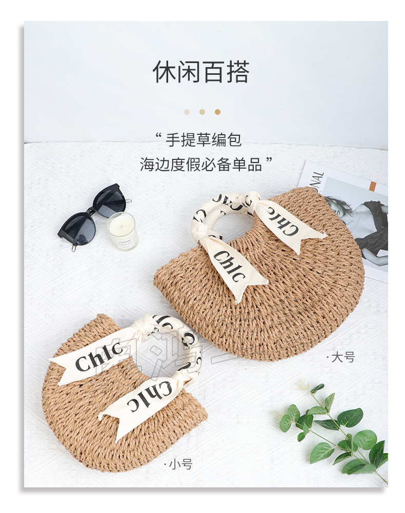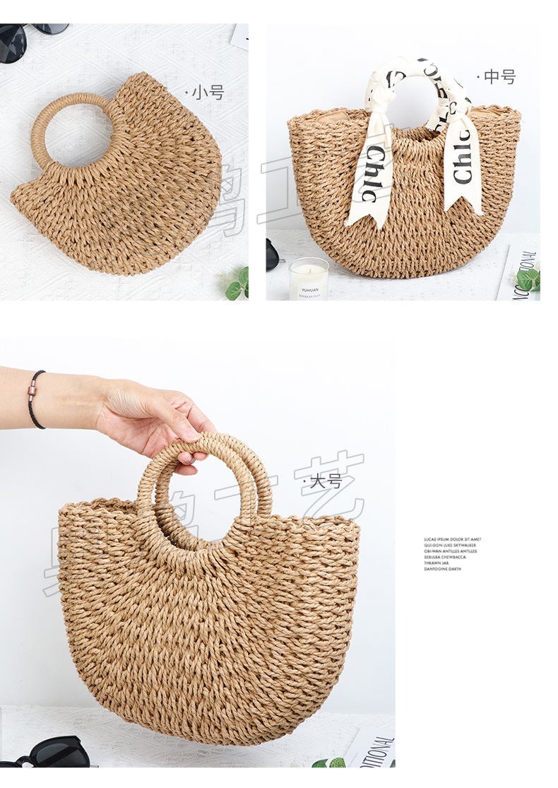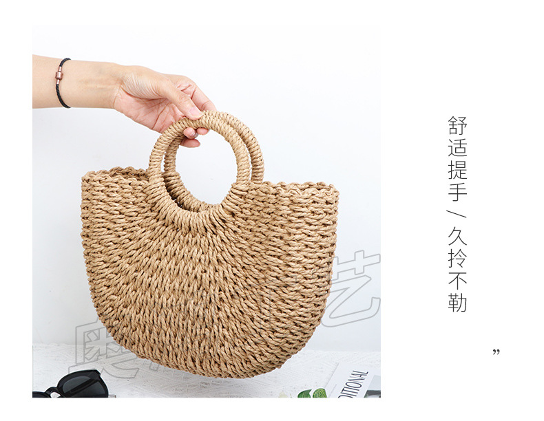 シンプルな売れ筋わらバッグ新しい日本と韓国スタイルの織バッグ半円形ビーチバッグポータブルラウンド紙ロープ織バッグ女性用