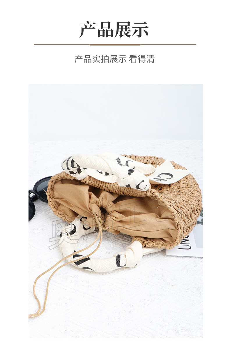 简约百搭手提半圆草编包新款编织圆斗包休闲度假风沙滩包手拎女包