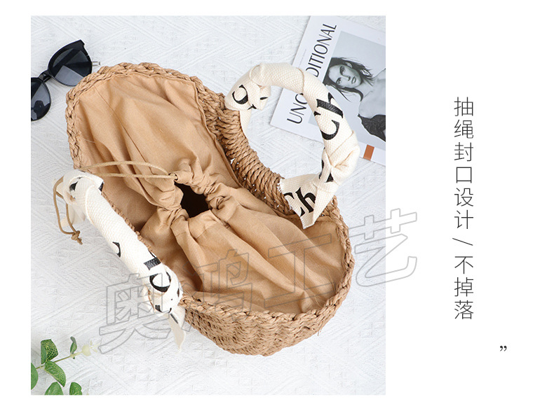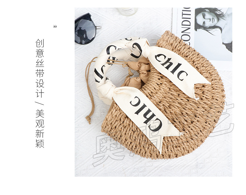 文艺时尚简约风女士单肩包圆形手环工艺纸草编织女包度假沙滩女包