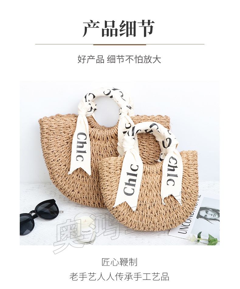 简约手拎草编包半圆手工编织手提包海边度假通勤托特包百搭沙滩包