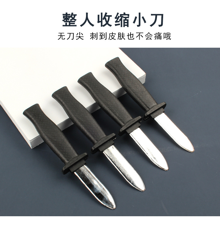おもちゃの伸縮刀の神器のスプリングナイフのプラスチックの偽刀の子供の演技の道具のおもちゃの卸売りをします。