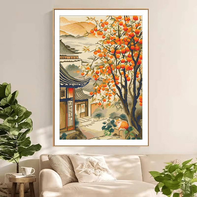 クロスステッチメーカー抖音快手上小紅書で一件代発送、2025年新作糸刺繍柿柿如意シンプルモダン