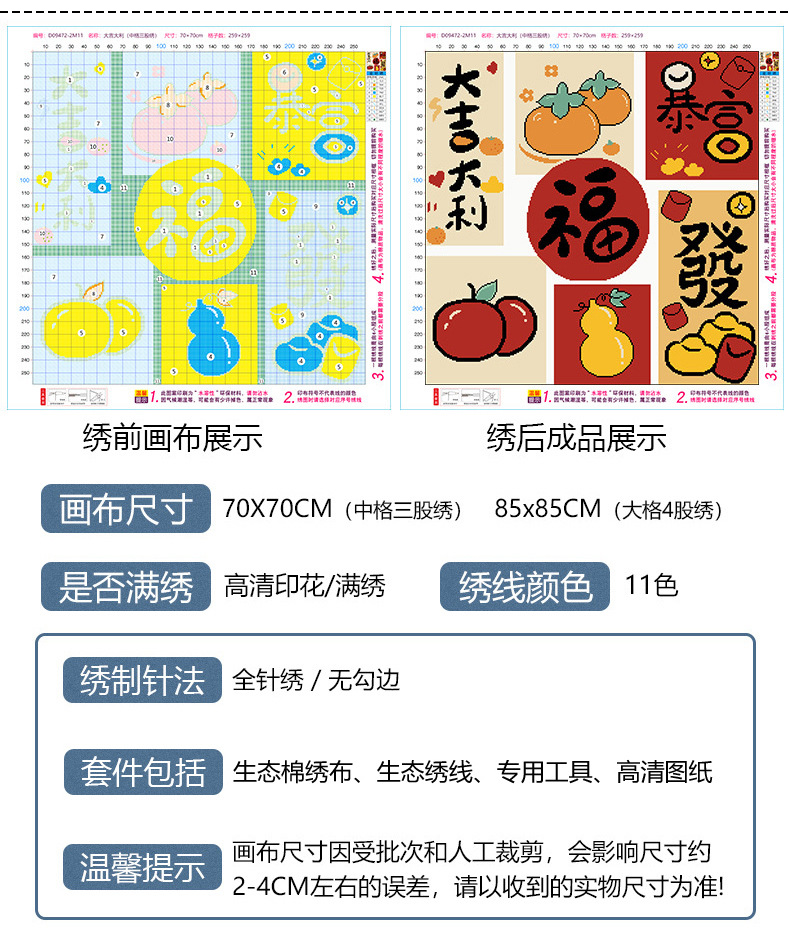 カラー 50*50-中格3株刺繍,70*70-中格3株刺繍,60*60-大格4株刺繍,85*85-大格4株刺繍