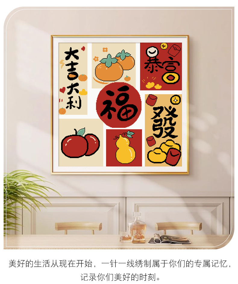 クロスステッチメーカー Douyin Kuaishou Xiaohongshu ドロップシッピング 2025 新スタイル糸刺繍 リビングルーム刺繍 縁起の良い祝福