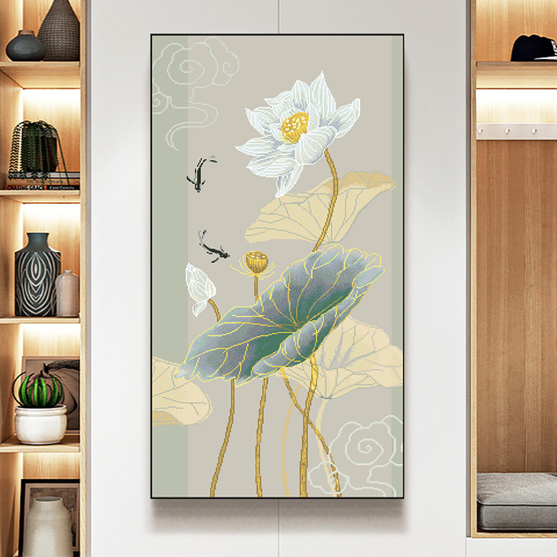 クロスステッチメーカー Douyin Kuaishou Xiaohongshu ドロップシッピング 2025 新しい糸刺繍リビングルーム刺繍花蓮