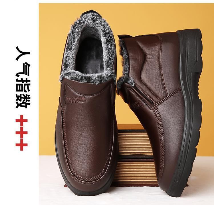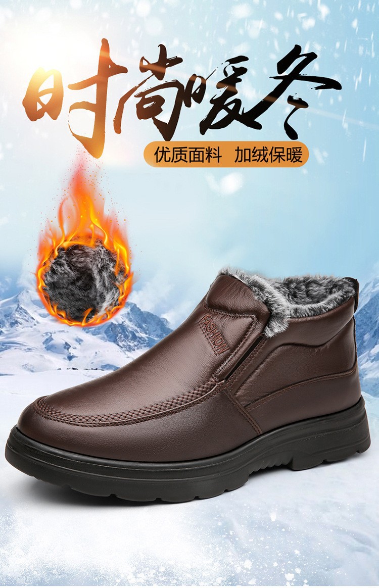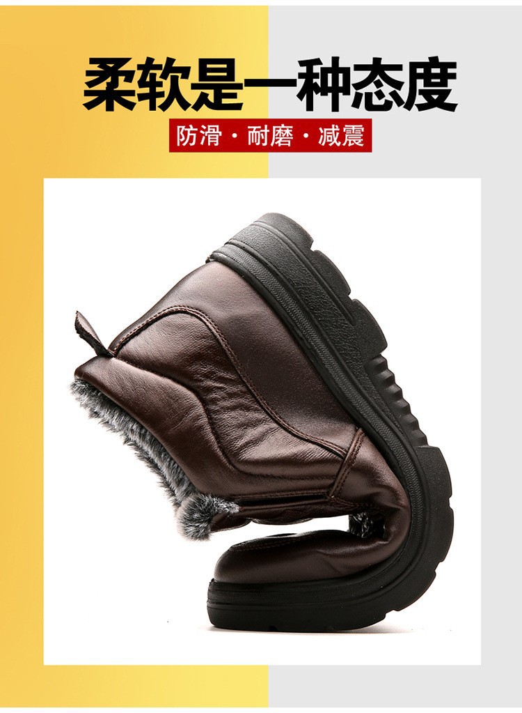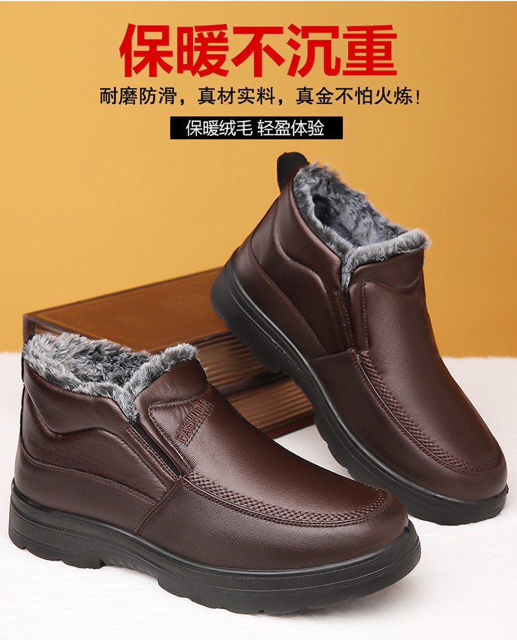 加厚保暖男鞋冬季中老年真软皮高帮加绒休闲棉靴防滑爸爸鞋皮