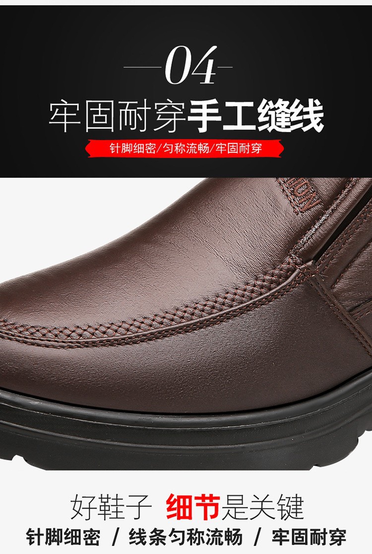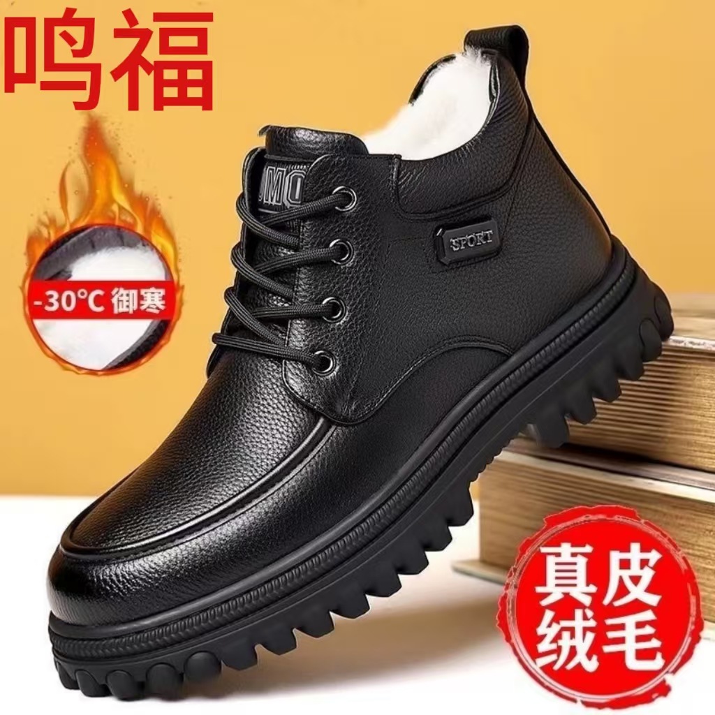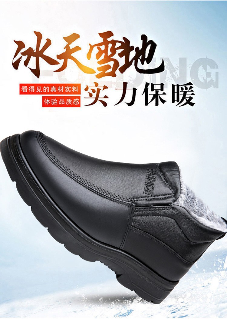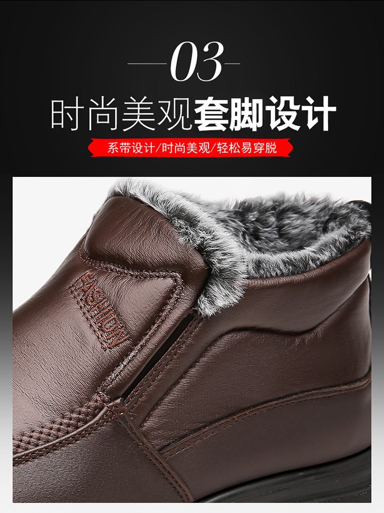 加厚保暖男鞋冬季中老年真软皮高帮加绒休闲棉靴防滑爸爸鞋皮