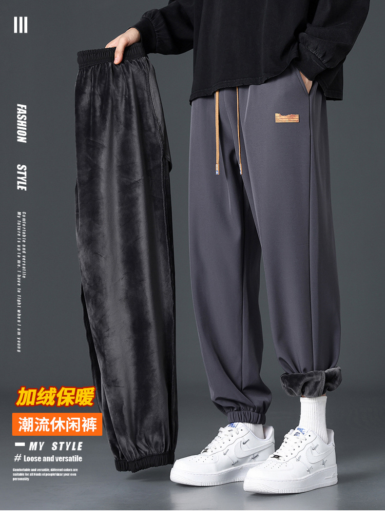 运动休闲裤加绒男款直筒裤长裤简约百搭加绒加厚宽松休闲卫裤