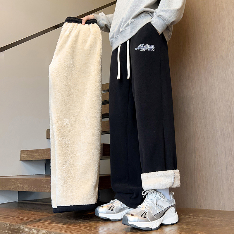 羊羔绒裤子男生冬季2025新款加绒加厚男士休闲棉裤秋冬款直筒卫裤