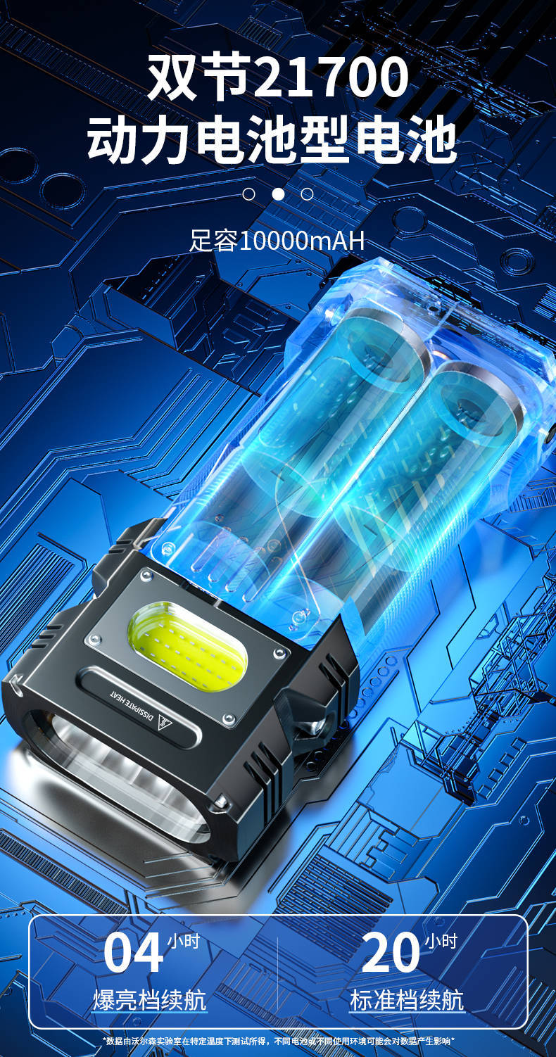 全新强光手电大功率户外充电铝合金led探照灯21700一体仓超亮远射