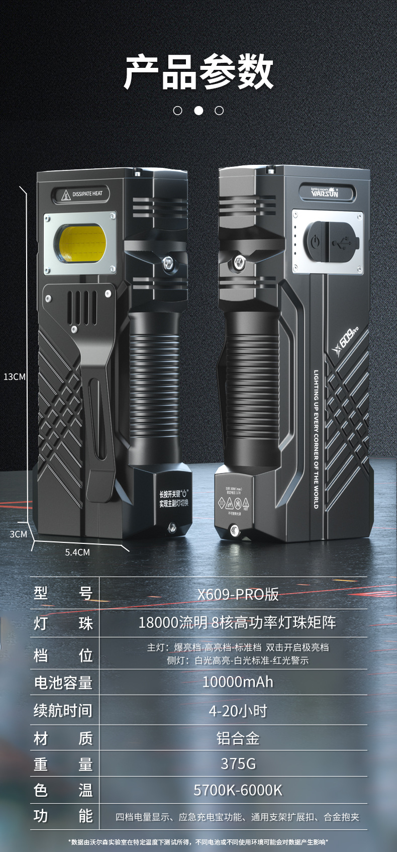 ウォルソンX609pro懐中電灯強光遠射長航続メーカー直販