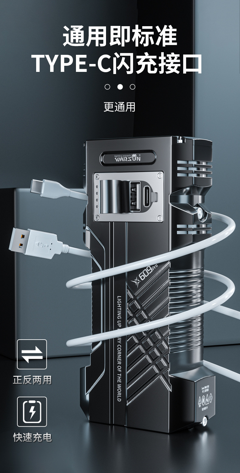 メーカー直販X608S懐中電灯長航続充電強光遠射屋外用多機能led懐中電灯