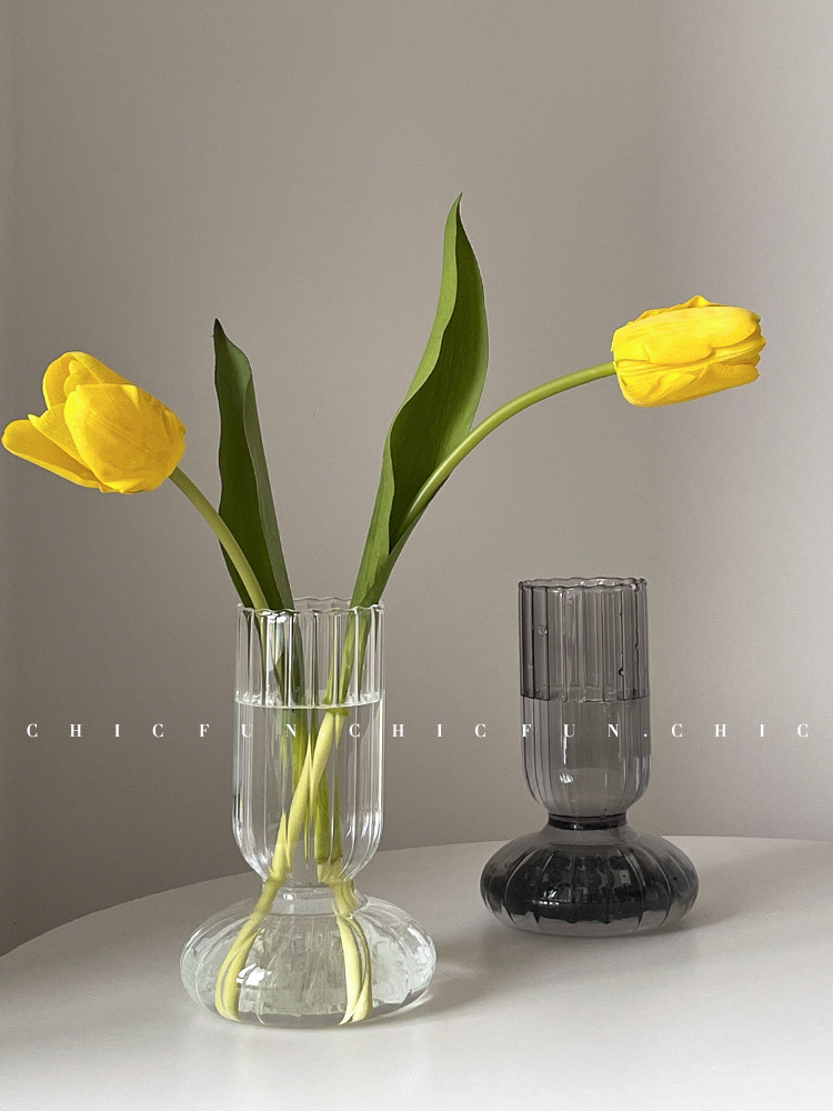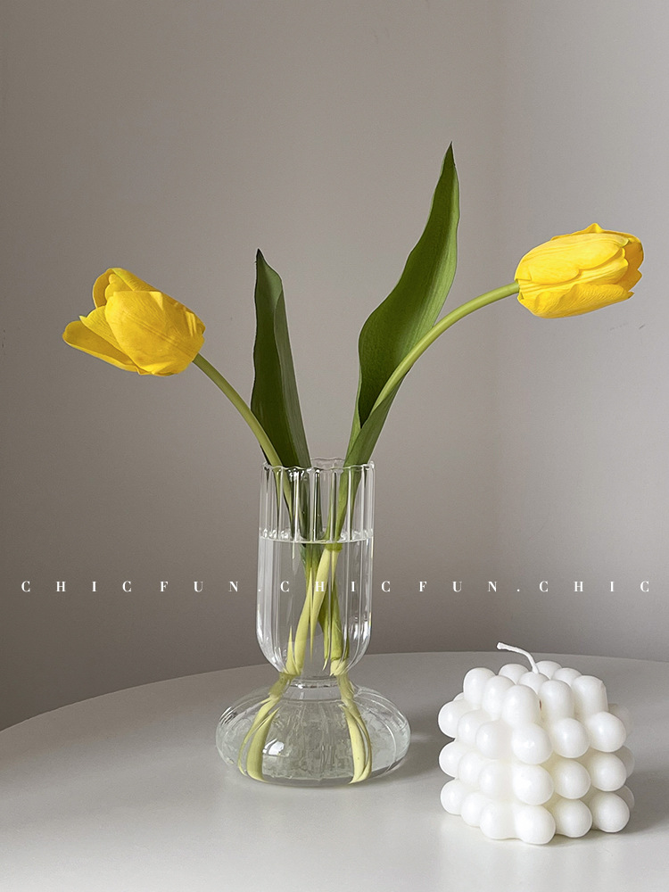 ミニ花瓶置物リビング生け花透明ガラス高級感食卓ネット赤水養生花水培花器