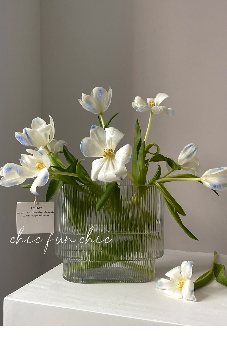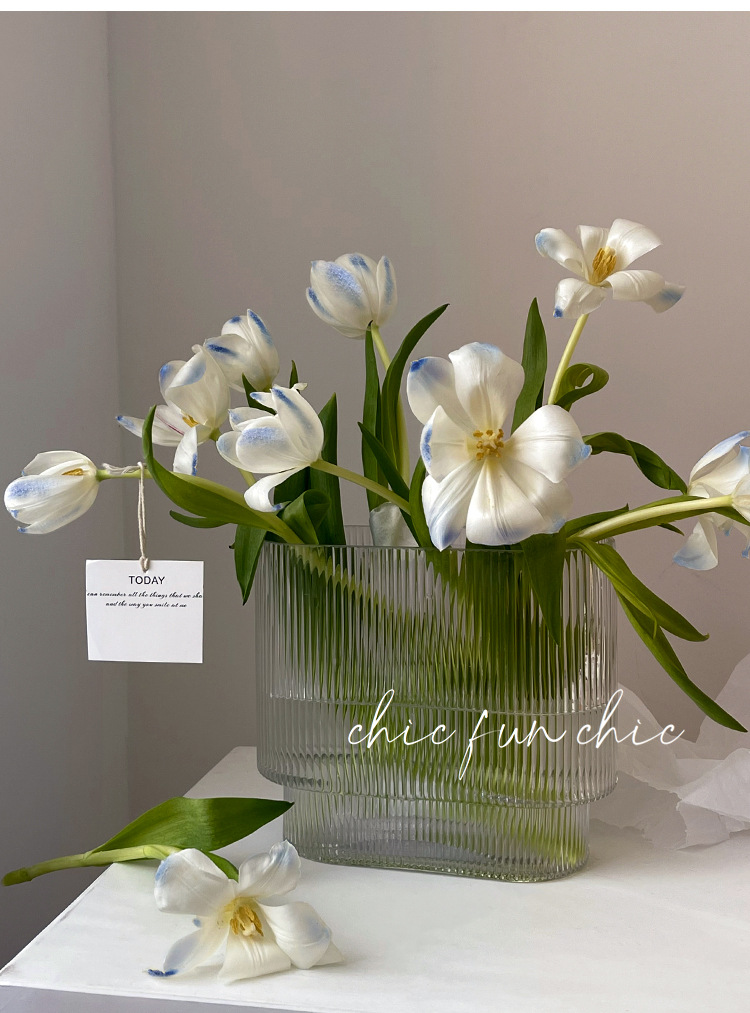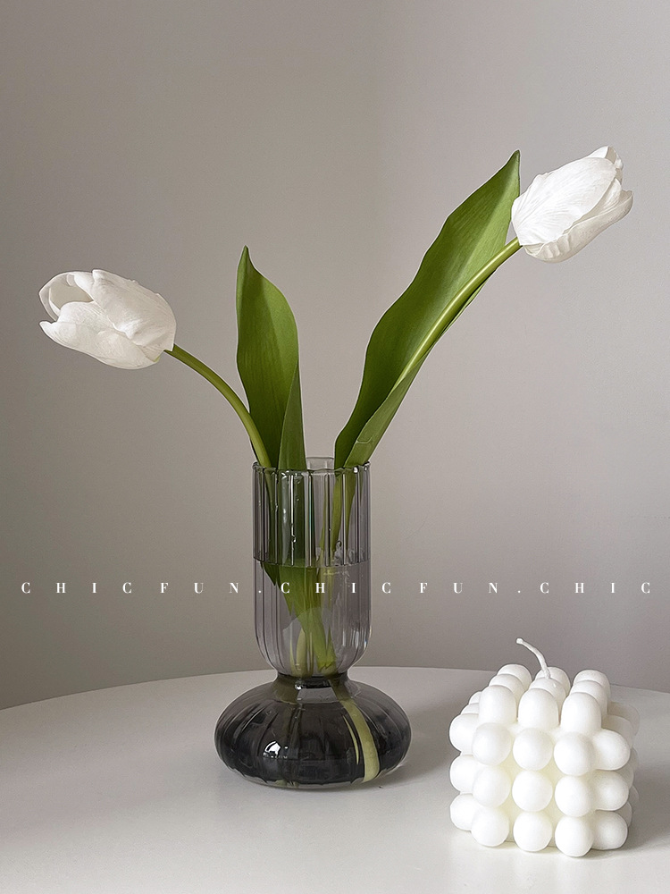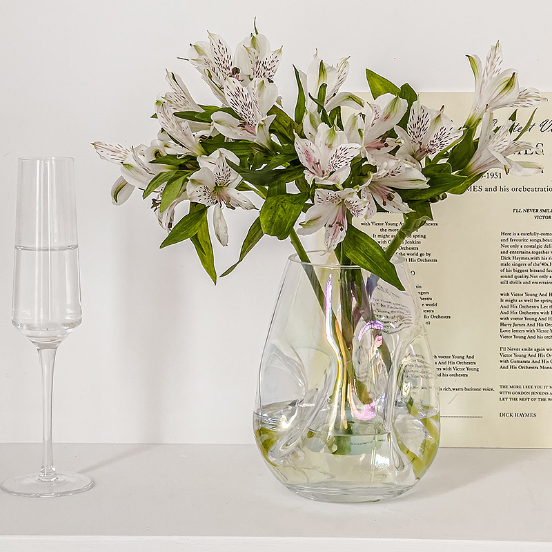 花瓶置物リビング生け花透明ガラスネット赤百合花バラ水養水培食卓高級感